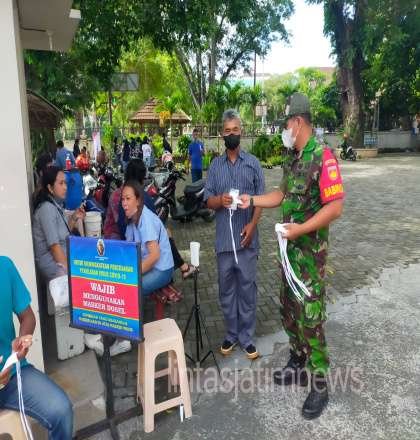 SURAKARTA lintasjatimnews – Babinsa Kelurahan kampung baru,anggota Koramil 05/pasar Kliwon, Kodim 0735/Surakarta Serda Sugeng melaksanakan himbauan dalam pencegahan Covid-19 serta membagikan masker kepada masyarakat yang akan melaksanakan ibadah, Minggu (12/12/2021).