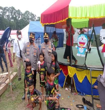 Kapolres mendatangi tenda pengungsian, berbincang langsung dengan pengungsi. Kemudian menyapa anak-anak korban bencana Semeru. Dalam kesempatan itu, bantuan diserahkan langsung di posko tersebut. Kasatlantas Polres Gresik AKP Engkos Sarkosi turut hadir.