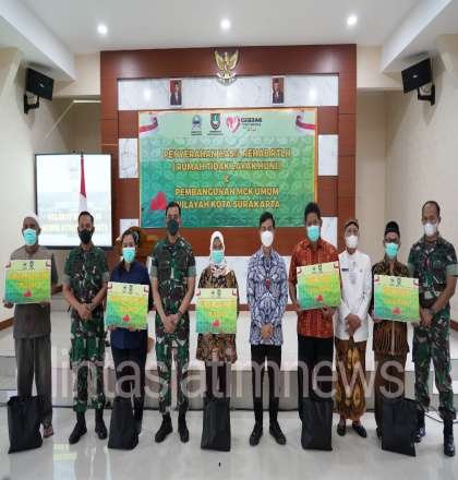 Kegiatan dilanjutkan dengan penyerahan RTLH, MCK Umum dan Sembako oleh Danrem, Walikota dan Dandim 0735/Surakarta kepada Warga penerima RTLH dan perwakilan penerima MCK Umum.(Arda 72)
