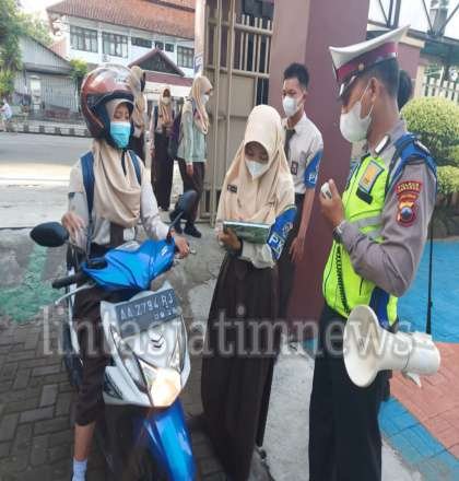 Selain pemantauan prokes, murid-murid juga diimbau untuk memiliki SIM jika mengendarai sepeda motor saat berangkat sekolah. Melalui kegiatan itu, Sat Lantas mensosialisasikan pentingnya kepemilikan SIM bagi pengguna sepeda motor. Kebanyakan pengendara memiliki SIM ditujukan agar tidak kena tilang di jalan.