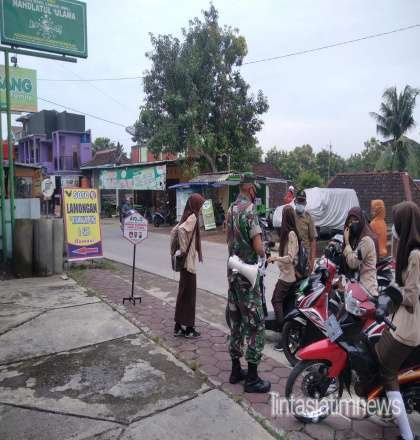 BOYOLALI lintasjatimnews – Babinsa Desa Klewor Koramil 18/Kemusu Kodim 0724/Boyolali Koptu Budi melakukan kegiatan komunikasi sosial sekaligus pembinaan kepada anak – anak sekolah terutama kalangan Siswa SMA dalam penegakan disiplin protokol kesehatan di Depan Kantor NU Klewor RT 02/RW 01 Desa Klewor Kecamatan Kemusu Kabupaten Boyolali. Senin (17/01/2022).
