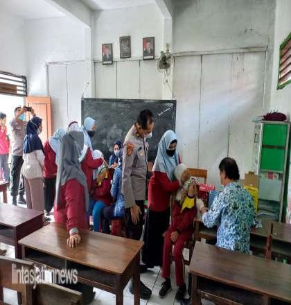 Vaksinasi tersebut diberikan kepada para pelajar yang masih duduk di bangku Mi itu menjalani skrining terlebih dahulu sebelum menerima vaksin.