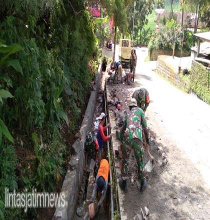 Anggota Koramil tampak antusias bahu membahu bersama warga Kampung setempat. Karya bakti yang dilakukan anggota Babinsa tersebut bertujuan melahirkan kebersamaan bermasyarakat, di samping menjadi bagian kemanunggalan TNI.