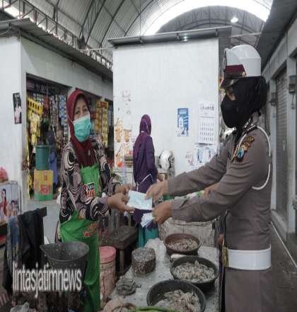 Kapolres Gresik AKBP Mochamad Nur Azis melalui Kasatlantas Polres Gresik AKP Engkos Sarkosi mengatakan pembagian masker di pasar agar masyarakat tetap disiplin prokes saat beraktivitas di luar rumah.