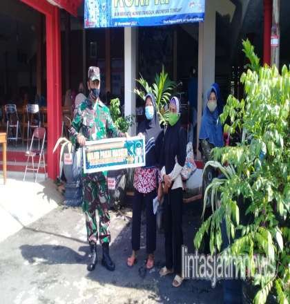 Anggota Koramil 14/Jatisrono Terus Ajak Warga Disiplin Memakai Masker