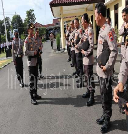 KEBUMEN lintasjatimnews.- Pengecekan kerapihan personel dilakukan langsung oleh Kapolres Kebumen AKBP Piter Yanottama saat memimpin apel pagi, Senin (24/01/22).