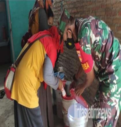 SRAGEN lintasjatimnews – Dukung wilayah binaannya bersih dari sarang nyamuk demam berdarah, Sertu Sukimin Babinsa Sunggingan Koramil 16/Miri Kodim 0725/ Sragen dampingi Kader Jumantik Kelurahan Sunggingan melaksanakan kegiatan Pemberantasan Sarang Nyamuk (PSN) di wilayah Dk. Bulakrejo, Desa Sunggingan, Kecamatan Miri, Rabu (26/1/2022).