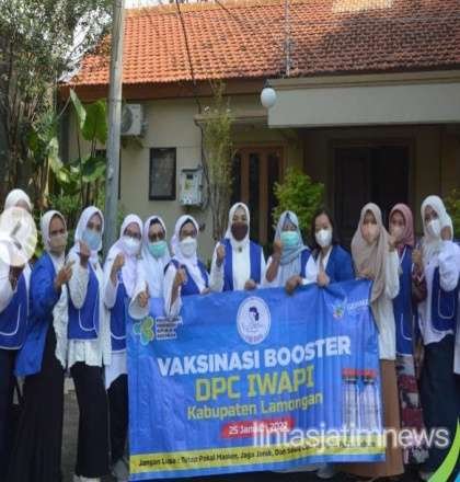 LAMONGAN lintasjatim – Ikatan Wanita Pengusaha Indonesia (IWAPI) Kabupaten Lamongan, menggelar aksi vaksinasi booster dalam rangka HUT (Hari Ulang Tahun) IWAPI ke 47 di Guest House Kabupaten Lamongan, Selasa (25/1/2022).