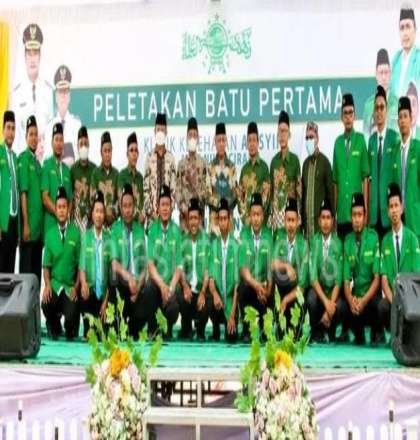 LAMONGAN lintasjatimnews – Bupati Lamongan Yuhronur Efendi, didampingi Wabup Abdul Rouf, Rais Syuriyah NU Lamongan KH Salim Azhar, Pengurus PCNU Lamongan KH Masnur Arif, jajaran pengurus MWC NU dan Forkopimcam Paciran, melakukan peletakan batu pertama Klinik Kesehatan As Syifa’ MWC (Majelis Wakil Cabang) NU Paciran, Ahad (6/2/2022).