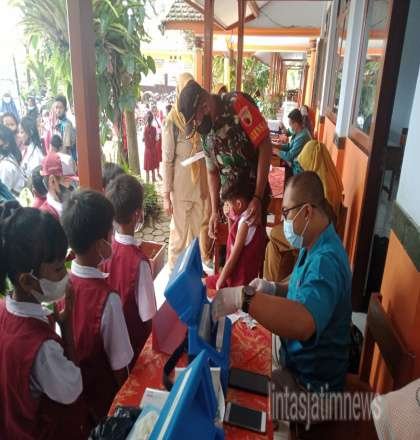 “Ada 240 anak, 16 anak dapat dosis I dan 226 anak dapat dosis II.” ungkap Serma Sutrisno.