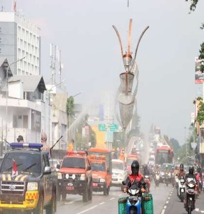 “Kegiatan kita pagi ini di antaranya penyemprotan disinfektan secara serentak di semua ruang publik, mulai dari tingkat kota sampai dengan RT-RW yang terkecil, secara serentak dan terpadu, serta pembagian masker secara gratis”tuturnya.