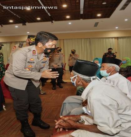Kapolda Jawa Timur Irjen Pol Nico Afinta didampingi Forkopimda Kabupaten Pasuruan, menggelar vaksinasi baik tahap 2 dan 3, jenis Sinovac dan Astrazaneca sebanyak 200 dosis.