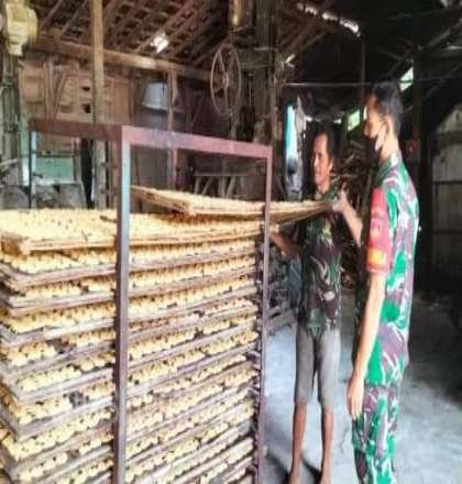 BOYOALLI lintasjatimnews – Guna memberikan motivasi kepada masyarakat binaan dalam berwirausaha, Babinsa Pulutan Koramil 13/Nogosari Kodim 0724/Boyolali Serka Sumanto melaksanakan komunikasi sosial (Komsos). Kali ini Serka Sumanto komsos ke usaha kecil menengah (UKM) Pabrik kerupuk milik Bapak Tukiman Trubus Murni di Dukuh Pelem Rt 02 Rw 02 Desa Pulutan Kecamatan Nogosari Kabupaten Boyolali. Sabtu (12-02-2022)
