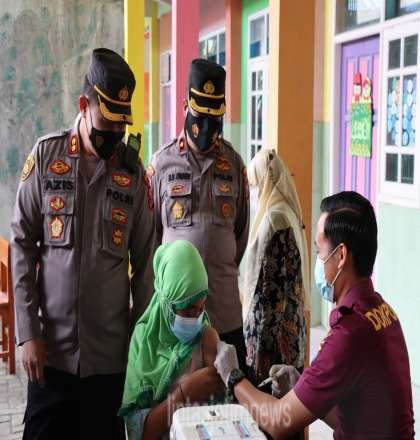 “Kami menggelar vaksinasi massal di MI Sabilul Mubtadiin Gresik Vaksin Sinovac Dosis 2 sebanyak 218 Siswa-siswi” tutur Kapolres Gresik.