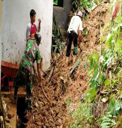 “Kepedulian Babinsa dengan warga di wilayah binaan harus terus ditunjukkan, seperti halnya sekarang ini anggota Koramil, bahu-membahu bersama masyarakat melaksanakan kerja bakti bersihkan material longsor yang menimpa rumah”, Tegas Babinsa.