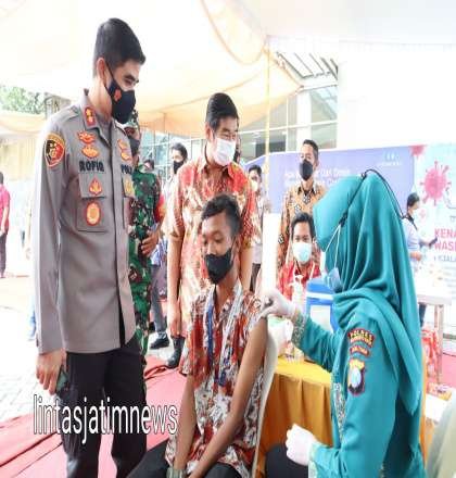 MOJOKERTO lintasjatimnews – Polresta Mojokerto bekerjasama dengan Manajemen PT Kitoshindo International Biotech (Kitoshindo Group) dalam rangka dukungan pencapaian vaksinasi 100 persen yang bertepatan dengan digelarnya Vaksinasi Secara Sersentak yang ditinjau laingsung Presiden Presiden Joko Widodo secara virtual.