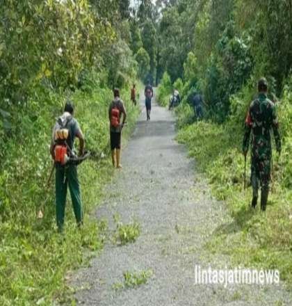“Sebelum dibersihkan jalan itu kanan kirinya tumbuh rumput dan semak yang menutupi jalan,” ujar Babinsa.