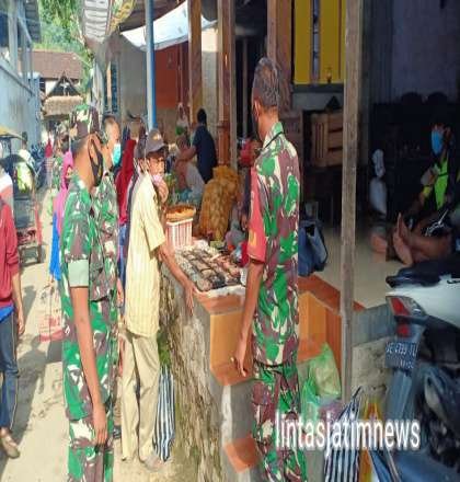 PACITAN lintasjatimnews – Babinsa 0801/03 Arjosari Serda Nurokhim bersama rekan Babinsa lainya melaksanakan operasi penegakan disiplin Protokol kesehatan ke tempat-tempat keramaian salah satunya pasar tradisional Arjosari Jl. Raya Pacitan Ponorogo, Kecamatan Arjosari, Kabupaten Pacitan, Minggu (28/02/2022).