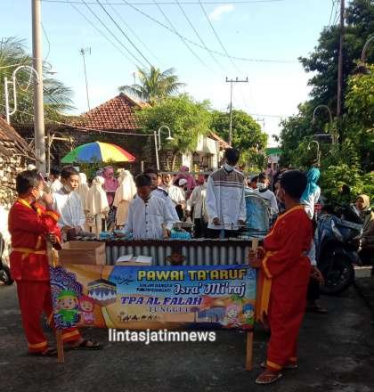 “Kegaitan ini diawali dengan pawai ta’aruf yang diikuti oleh seluruh santriwan-santriwati TPA Al Falah Tunggul dan anggota Tapak Suci Putra Muhamadiyah, tetapi karena situasi masih pandemi maka unit yang berada di lingkungan Sekrikil dan Ngebrak mengadakan kegiatan di lingkungannya sendiri”.
