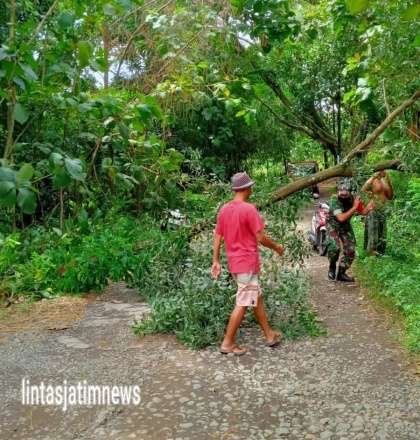 “Adanya kejadian tersebut membuat warga pengguna jalan terganggu. Oleh karena itu saya perintahkan Babinsa desa setempat untuk membantu membersihkan pohon tumbang yang sempat menutupi akses jalan,” tegas Danramil.