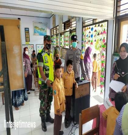 TRENGGALEK lintasjatimnews – Dalam rangka mendukung kegiatan serbuan vaksinasi dan memutus penularan Covid-19, Babinsa Koramil 0806/09 Tugu jajaran Kodim 0806/Trenggalek Pelda Matohir bersama Bhabinkamtibmas turut mendampingi pelaksanaan serbuan vaksinasi Covid – 19 kepada anak sekolah di SDN 1 Sukorejo, Kecamatan Tugu, Trenggalek, Sabtu (12/03/2022).