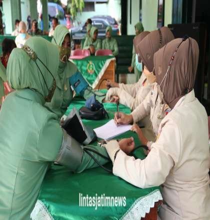 TRENGGALEK lintasjatimnews – Dalam rangka menyambut peringatan HUT Ke- 76 Persit Kartika Chandra Kirana (KCK) tahun 2022, Persit KCK Cabang XX Kodim 0806 Trenggalek bekerjasama dengan PMI Cabang Trenggalek menggelar kegiatan bakti sosial donor darah, Selasa (22/03/2022).