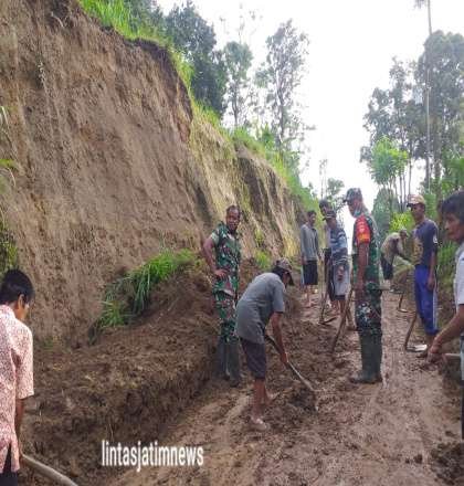 “Pembersihan jalan kita maksimalkan hari ini agar aman saat warga melintas.”Ujar Danramil.