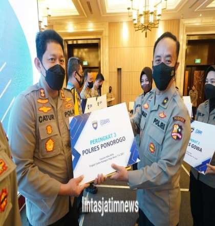 “Penghargaan ini bukan berarti kita sudah selesai, tetapi merupakan lecutan semangat agar kita semua lebih keras lagi dalam melayani masyarakat dengan sepenuh hati sehingga Polisi menjadi Pelindung dan Pengayom masyarakat benar-benar terwujud dengan terciptanya Kondusifitas di wilayah hukum Polres Ponorogo.” Pungkas AKBP Catur Cahyono Wibowo.