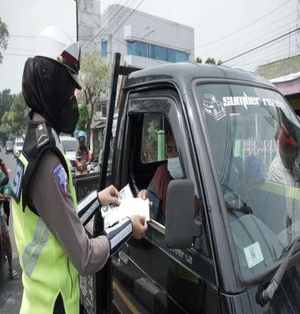 Polres Gresik terus membagikan masker handsanitizer kepada pengguna jalan. Sekaligus memberikan himbauan terkait protokol kesehatan covid 19.