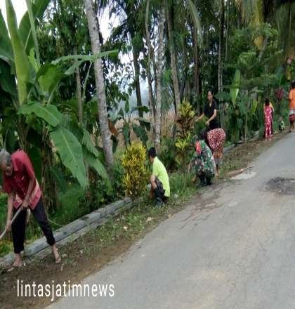 TRENGGALEK lintasjatimnews – Babinsa Koramil 0806/09 Tugu jajaran Kodim 0806/Trenggalek Serka Ihwan bersama-sama dengan warga binaannya bergotong-royong melaksanakan kerja bakti membersihkan lingkungan di RT. 06 RW. 02 Desa Winong, Kecamatan Tugu, Trenggalek, Minggu (03/04/2022).