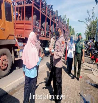 NGAWI lintasjatimnews – Untuk meningkatkan kesadaran masyarakat tentang pentingnya mematuhi protokol kesehatan terutama penggunaan masker, anggota Koramil 04/Padas Kodim 0805/Ngawi Sertu Agus bersama Polsek Padas menggelar operasi yustisi dan pendisiplinan protokol kesehatan di Pasar,Rabu (06/04/2022).