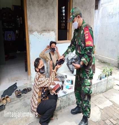 Jaga Diri Saling Peduli, Covid-19 Belum Pergi, Babinsa Joyosuran Bagikan Masker Gratis