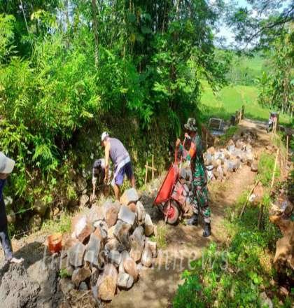 Bersama Masyarakat, Anggota Koramil Sine Kerja Bakti Bangun Talud