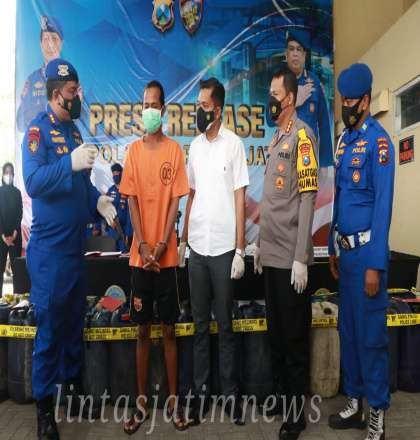 SURABAYA lintasjatimnews – Direktorat Kepolisian Air dan Udara (Ditpolairud) Polda Jawa Timur, pada (5/4/2022) sekira pukul 20.00 WIB, di Pelabuhan Dungkek, Sumenep, Madura. Berhasil meringkus satu orang tersangka yakni SRW, dengan dugaan pengangkutan dan Niaga BBM yang Disubsidi Pemerintah.