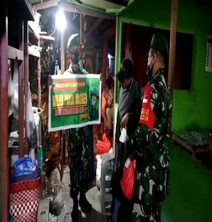 Kegiatan untuk memberikan himbauan secara humanis agar warga tetap menerapkan protkes tersebut kali ini dilakukan oleh anggota Babins Serka Agus Heri, Sertu Sarto dan Serda Winarto.