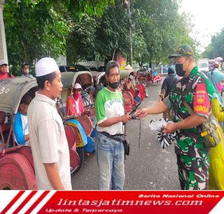 Untuk memutus penyebaran virus covid-19 Babinsa Kauman dan Satpam Pasar Cinderamata mensosialisasikan PPKM kepada pengemudi becak dan membagikan masker untuk upaya memutus penyebaran Covid-19, Dengan cara yaitu penggunaan Masker, sesering mungkin Cuci tangan dgn sabun serta jaga jarak guna mencegah penyebaran Covid-19 dimasyarakat.