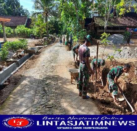 TRENGGALEK lintasjatimnews – Satuan Tugas (Satgas) TNI Manunggal Membangun Desa (TMMD) Kodim 0806/Trenggalek melakukan pembangunan drainase di RT. 15 RW. 09 Dusun Gambar Desa Bogoran Kecamatan Kampak, Trenggalek, Minggu (15/05/2022).