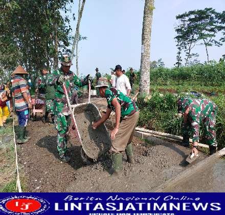 Bukti Kemanunggalan TNI-Rakyat, Personil Koramil Giriwoyo Laksanakan Karya Bakti Cor Jalan