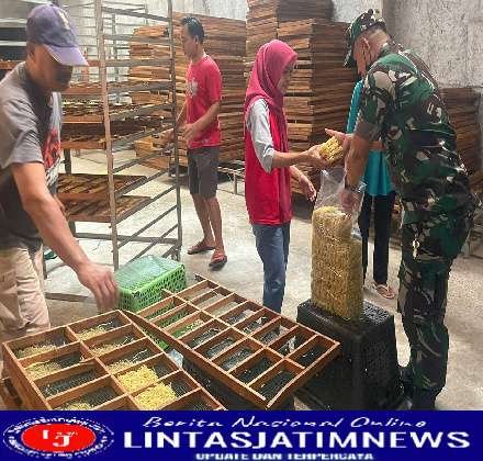 WONOGIRI lintasjatimnews – Selain melaksanakan tugas pokok sebagai Babinsa, anggota Koramil 17/Sidoharjo Serda Rivaldo Mouldovan Sawaki bersama Serda Demianus Mezach Raubaba melaksanakan kegiatan Komunikasi Sosial (Komsos) di rumah sekaligus tempat pembuatan mie milik Dedi tepatnya di Bakalan Kulon RT. 02 RW. 02, Kelurahan Sidoharjo, Kec. Sidoharjo Kab. Wonogiri, Sabtu (21/5/22).