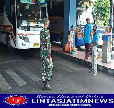 Kegiatan pengawasan PPKM di lakukan oleh Babinsa Kelurahan Gilingan di Terminal Tirtonadi yang berada di wilayah binaannya.