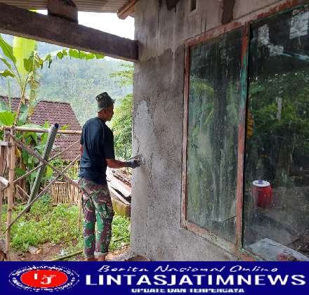 Ketangkasan Satgas TMMD Kodim 0806/Trenggalek Plester Dinding Rumah Ibu Khadirah