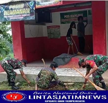 Warga Dan Babinsa Koramil 0801/05 Nawangan Kompak Bersihkan Pos Kampling