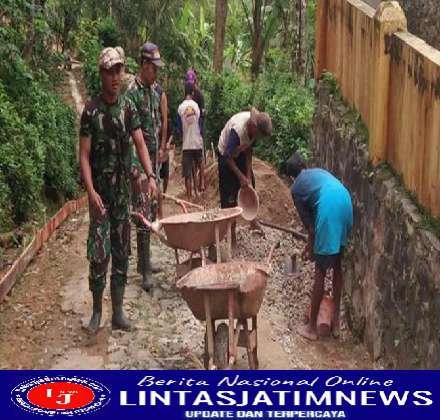 Demi mencapai tujuan tersebut maka, Serda Arif Efendy Babinsa Koramil 0801/07 Ngadirojo Kodim 0801/Pacitan, melaksanakan kerja bakti pengecoran jalan di desa Pagerejo Kec.Ngadirojo Kab. Pacitan.Sabtu (11/6/2022)