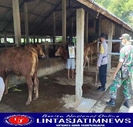 LAMONGAN lintasjatimnews – Babinsa (Bintara Pembina Desa) Koramil (Komando Rayon Militer) 0812/26 Pucuk Serka Tegar melakukan pemeriksaan dan penyemprotan terhadap hewan ternak bersama instansi terkait. Hal ini untuk mencegah wabah Penyakit Mulut dan Kuku (PMK), Ahad (12/6/2022)