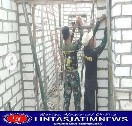 LAMONGAN lintasjatimnews – Babinsa Desa Payaman Koramil 0812/23 Solokuro Kebut Pengerjaan Rutilahu (Rumah Tidak Layak Huni), Senin (13/6/2022)
