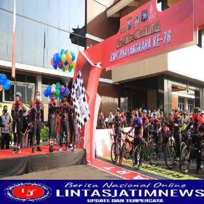 SURABAYA lintasjatimnews – Peringati HUT Bhayangkara ke 76, Polri gelar sepeda gembira yang di ikuti oleh seluruh Polda di Indonesia. Di Jawa Timur sepeda gembira secara langsung dilepas oleh Wakapolda Jatim Brigjen Pol Slamet Hadi Supraptoyo, pada Minggu (19/6/2022) di Mapolda Jatim.