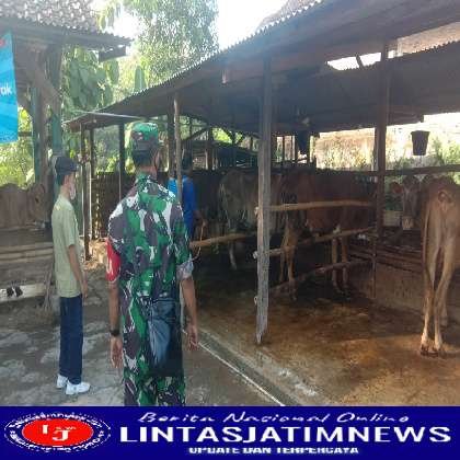 SRAGEN lintasjatimnews – Serda Rivo Prasetyo Babinsa Wonotolo Koramil 15/Gemolong Kodim 0725/Sragen beserta Pemdes Wonotolo bersinergi dengan Muspika Gondang melaksanakan giat Bakti TNI dengan sasaran melaksanakan penyemprotan cairan Bakteria Enzim Fermentasi ke kandang dan hewan ternak sapi warga dalam rangka penanggulangan dan pencegahan penyebaran wabah virus PMK (Penyakit Mulut Kaki) pada hewan ternak sapi warga di Dk. Ceme Rt.02 Ds. Wonotolo Kec. Gondang Kab. Sragen, Rabu ( 22/06/2022 ).