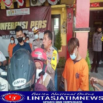 Kapolsek Asemrowo Kompol Hari Kurniawan yang di dampingi Kasi Humas Polres Pelabuhan Tanjung Perak Iptu Suroto memaparkan, tersangka di amankan saat berada di depan salah satu cafe di Surabaya, 16 juni 2022 pukul 00.30 WIB”, terang Hari saat press realese 30/06/2022