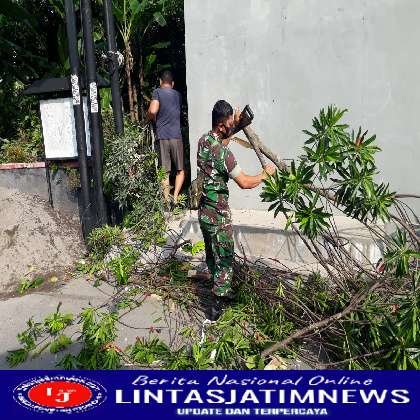 SURAKARTA lintasjatimnews – Babinsa Kelurahaan Laweyan Koramil 01/Laweyan Kodim 0735/Surakarta Serka giminanto dan Serda Eko Suprayitno bersama warga masyarakat kidul pasar Rt 04 Rw 01 melaksanakan kegiatan kerja bakti memangkas ranting ranting pohon yang mengganggu kenyamanan dijalan serta melaksanan komunikasi sosial di wilayah binaan, Kamis (30/06/2022)