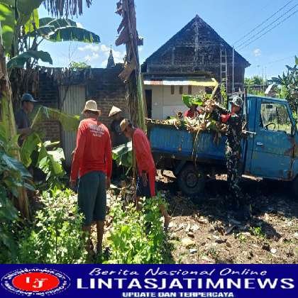 NGAWI lintasjatimnews – Babinsa Koramil 03/Geneng Kodim 0805/Ngawi Serka Agus bersama warga masyarakat melaksanakan kegiatan kerja bakti membersihkan lingkungan tempat tinggal di Desa Klampisan Kecamatan Geneng, Jum’at (01/07/2022).